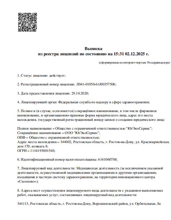 - возможность привлечения врачей общего профиля из медицинских клиник, состоящих с нашим центром в партнерских отношениях;